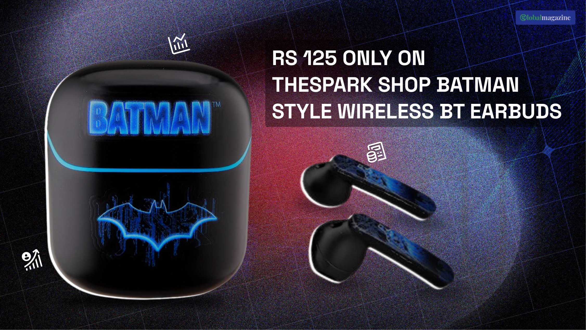 Rs 125 Only On TheSpark Shop Batman Style Wireless BT Earbuds